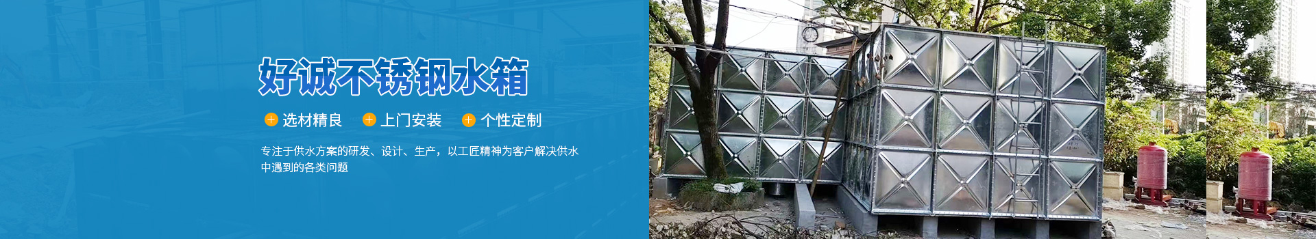 安徽好誠供水設備制造有限公司是一家集設計、研發、制造、銷售、售后為一體的專業不銹鋼水箱生產廠家,以科技力量立足于社會。近幾年來致力于供水設備、水箱的研究與開發。主要產品有:不銹鋼焊接式水箱、不銹鋼組合式水箱、BDF裝配式水箱、地埋式箱泵一體化設備、地上式箱泵一體化水箱、不銹鋼圓柱水箱、不銹鋼保溫水箱、SMC玻璃鋼水箱、熱鍍鋅水箱。對于傳統混凝土水箱的改造(即不銹鋼內貼水箱),老舊水箱的拆除、更換、...